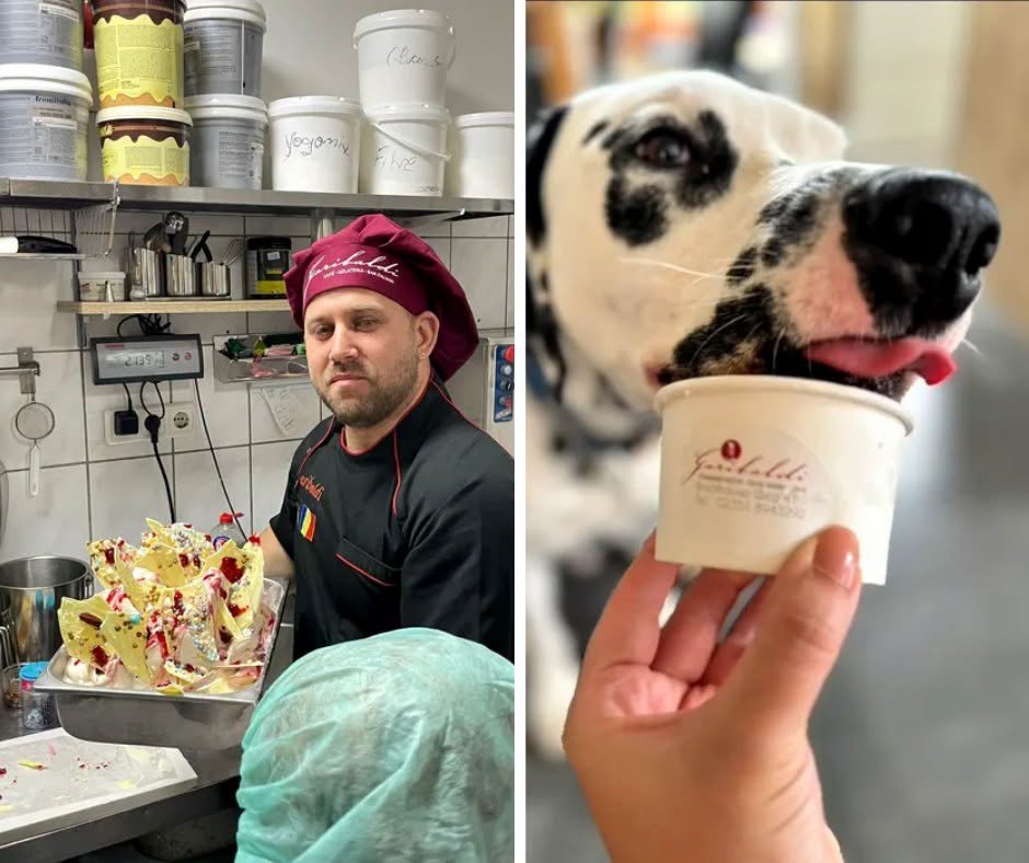 În gelateria lui, nu doar oamenii se răsfață cu deserturi artizanale, ci și patrupedele lor. Da, ai citit bine: înghețată special creată pentru câini, adaptată nevoilor lor.